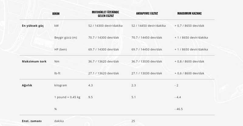 Bu egzoz motosikletin ve sportif görünümüne uyması için daha kompakt bir şekle sahiptir. El yapımı karbon fiber parçalar kullanılarak üretilmiş olup ve mükemmel şekilde yarışlarda kanıtlanmış malzemede titanyum uç kapağı ile tamamlanmıştır. Güç ve tork, tüm aralıkta artar ve standart stok sistemine göre ağırlık tasarrufu, gelişmiş performansa katkıda bulunur. Daha fazla işitsel keyif için zenginleştirilmiş bir ton sunar ve EC/ECE tip onaylıdır. Yeniden eşleştirme gerektirmez. Egzoz sistemi ZX-4RR versiyonuna ’da uygundur. Model: KAWASAKI NINJA ZX-4R (23-24) Ürün No : S-K4SO8-HRC Güç Bilgileri: [power]Güç: +0,7 kW - 8650 rpm [torque]Tork: +0.8 Nm - 8600 rpm [weight]Ağırlık:-2.0 kg Kutu içeriği pdf dosyasını indirmek için tıklayınız. EC belgesi pdf dosyasını indirmek için tıklayınız. ECE belgesi pdf dosyasını indirmek için tıklayınız. Kurulum talimatları pdf dosyasını indirmek için tıklayınız.