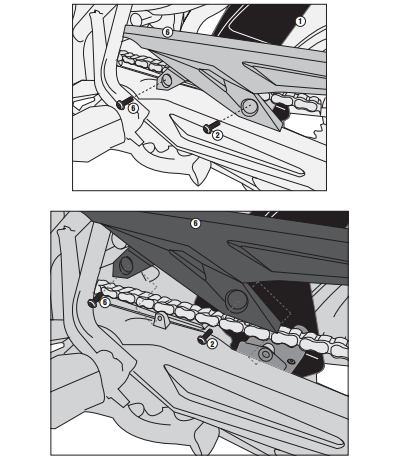 ZİNCİR MUHAFAZA VE ÇAMURLUK Model: TRIUMPH TIGER 800 - 800XC (2011-2014) TIGER 800 XR - 800XC (2015-2017) TIGER 800 XR - 800XC (18) Ürün No : MG6401 Bağlantı Şekli : Direkt