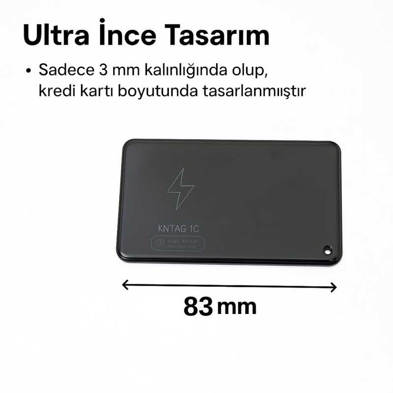 KNMASTER KNTAG 1C, Apple Find My ağıyla tam uyumlu çalışan, ultra ince tasarımlı ve kablosuz şarj destekli gelişmiş bir akıllı takip kartıdır. Cüzdan, pasaport, çanta, anahtar ve bagaj gibi sıklıkla kaybolabilecek değerli eşyalarınızı kolayca bulmanızı sağlar. Apple cihaz kullanıcıları için özel olarak geliştirilmiştir.