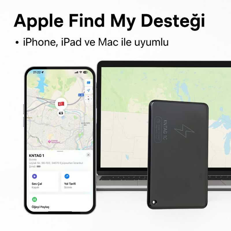 - Apple Find My Uyumluluğu: iPhone, iPad ve Mac cihazlarınızla doğrudan bağlantı kurar. Ekstra uygulama gerekmez.