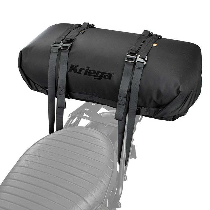 - ROLLPACK, bir arka rafa veya arka koltuğa güvenli bir şekilde oturacak şekilde tasarlanmıştır ve fazladan depolamaya ihtiyaç duyduğunuzda rulo haline getirilebilir ve motosiklet üzerinde veya bir sırt çantasında taşıyabilirsiniz.