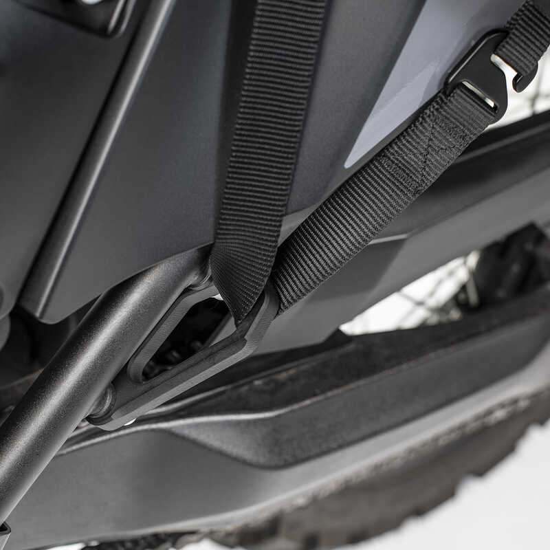 Arka ayaklıklar çıkarıldığında OS-BASE YAMAHA TENERE 700 üzerindeki ön kayışlar için alternatif bir montaj konumu sağlar.