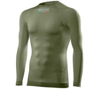 - Cildin nefes almasını sağlayan ve her türlü hava koşulunda (açık veya kapalı) vücudun ısı düzenlemesini sağlayan karbon iç çamaşırı kumaşından üretilen SIXS uzun kollu yuvarlak yakalı jarse.