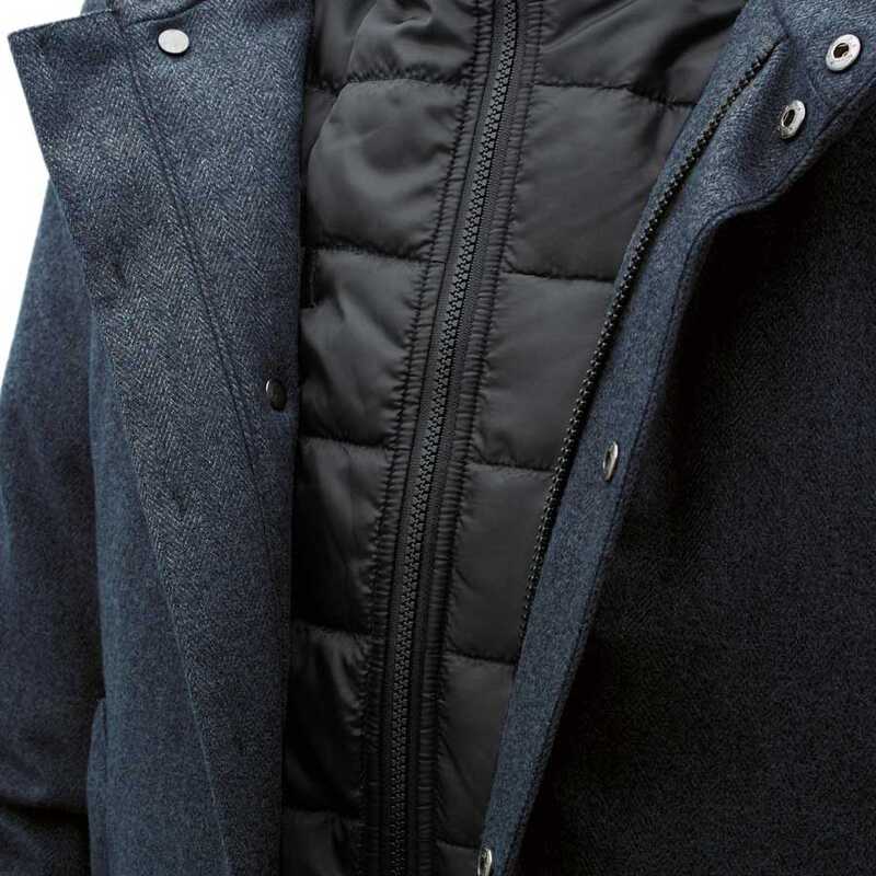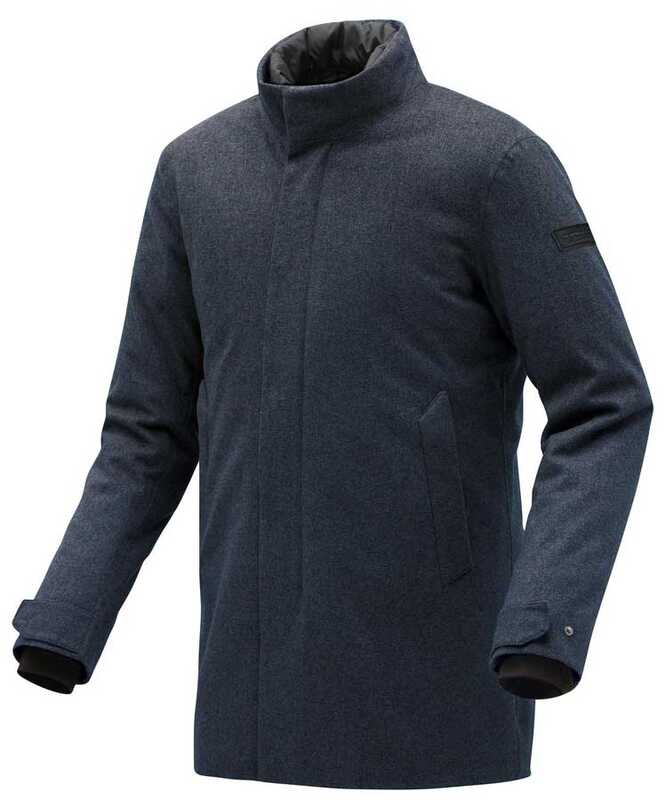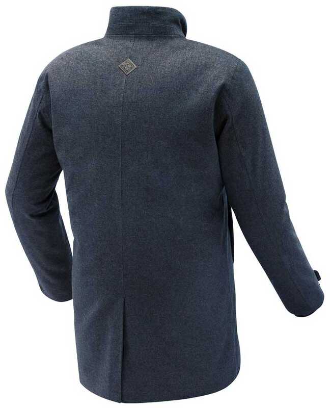 Klasik tarz, teknik HYDROSCUD® yapısı ve nefes alabilen ve rüzgar geçirmez yün efektli lamine kumaş yeniliğiyle birleştirilmiştir.