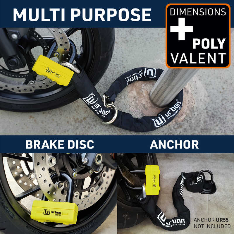 SRA onaylı DUO sistemi, ø13,5 mm kalınlığında, 120 cm uzunluğunda halka yapısına sahip yüksek güvenlikli çelik zincir ile ø18 mm şakleye sahip MINI U UR75 disk kilidini bir araya getirir. (Başarılı UR73120L modelinin 2022 versiyonu.)Çok Yönlülük