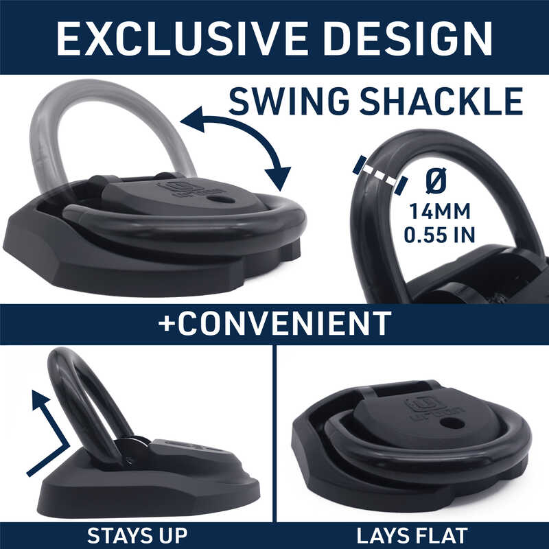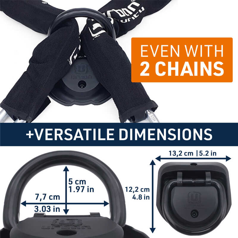 Salınımlı şakleye ve dayanıklı polipropilen ABS kapağa sahiptir. Bu tasarım sayesinde zincir geçirirken dik durur, kullanılmadığında ise yatay hale gelerek araç veya ankraja zarar vermeden üzerinden geçilebilir. Ayrıca, aynı anda iki aracı korumak için en kalın iki zinciri dahi geçirecek şekilde tasarlanmıştır.Çok Yönlü Kalıcı Kilitleme Noktası