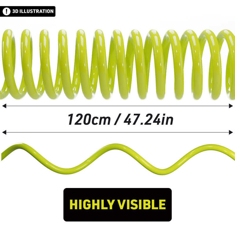 Dayanıklı örgü çelik kablo, 120 cm’ye kadar uzayabilir ve PVC kaplama ile aracınızın, kaskınızın veya scooterınızın boyasına zarar gelmesini önler.Size Hatırlatır, Hırsızları Uyarır
