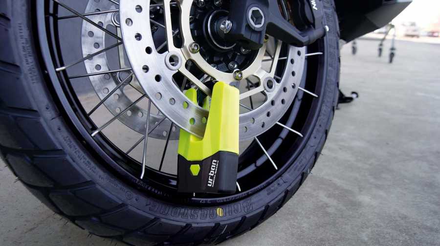 - Çift işlevli, sağlam bir disk hırsızlık önleme cihazı olmasının yanı sıra, bir zincirle de birleştirilebilir.